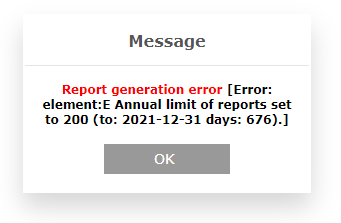 Annual limit of diagram/graphical reports is set to 5 but simple reports are unlimited. In commercial use this is definitely not enough but you can increase this limit. How to do it read below.